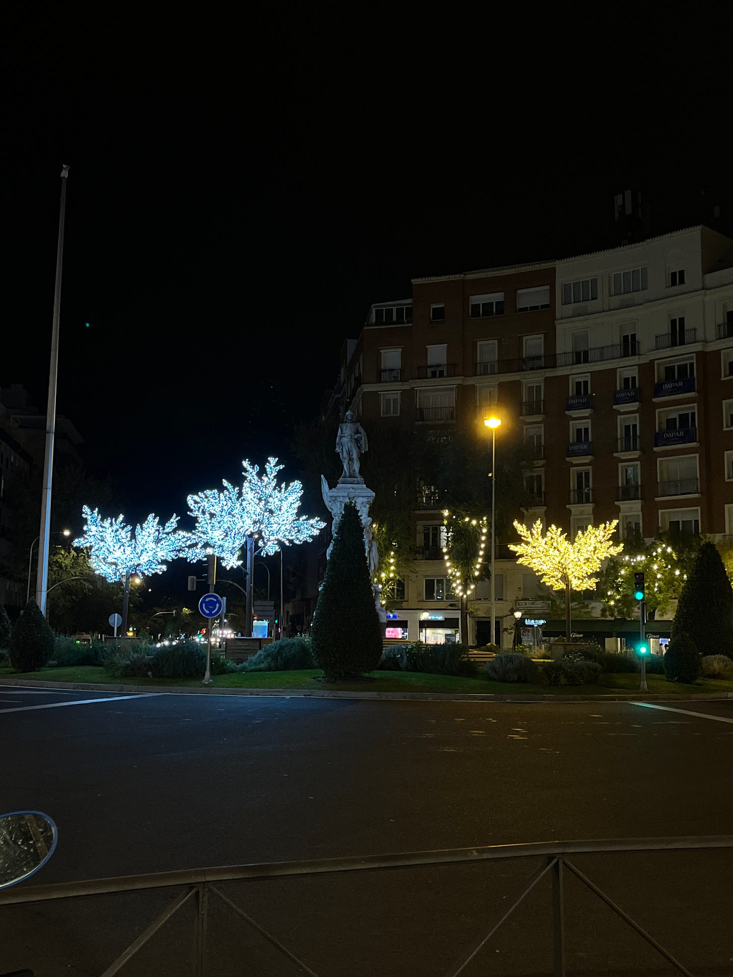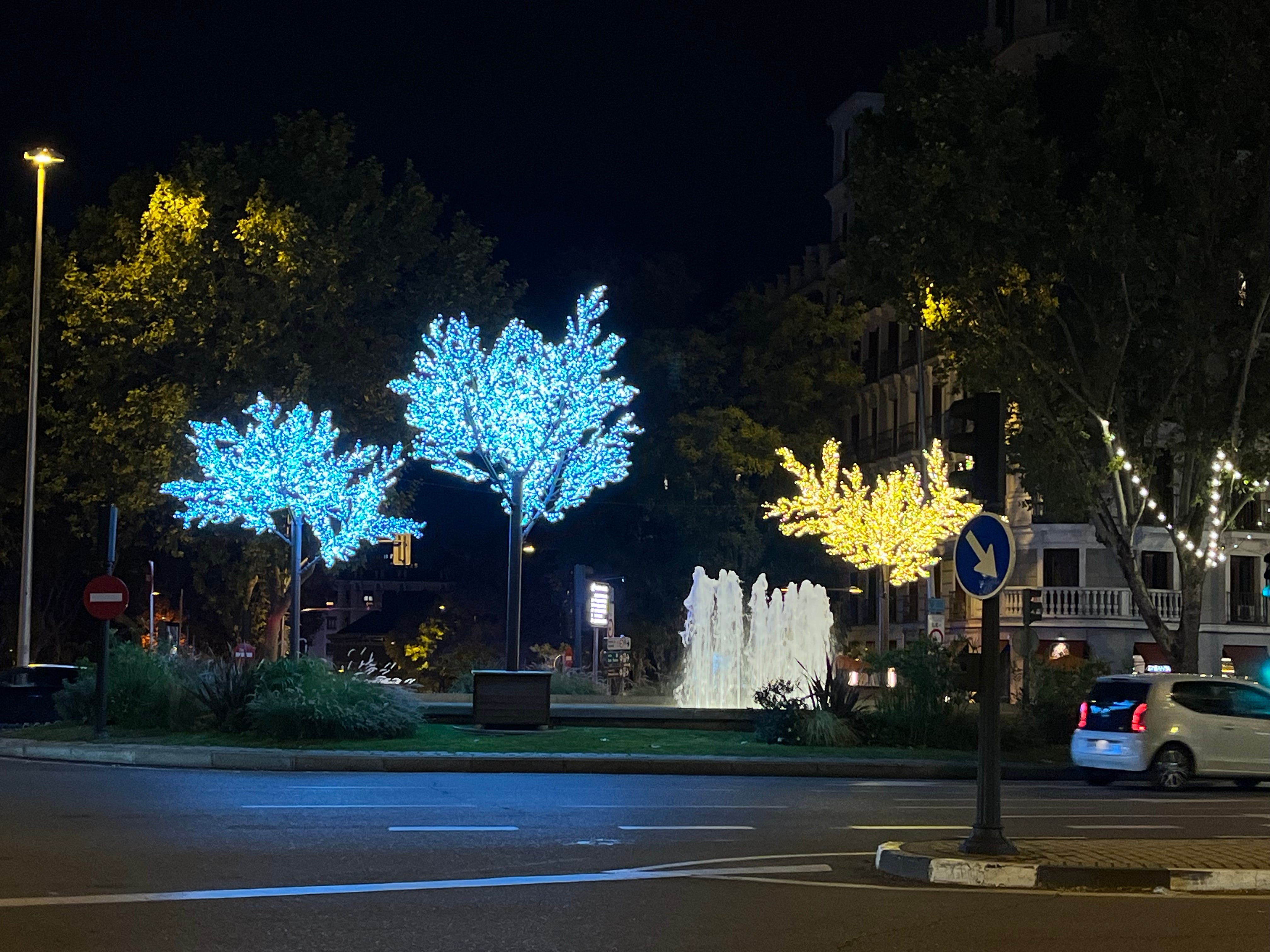 Y luego, si una rotonda está decorada con árboles de lucecitas (son monos) qué mínimo que poner los mismos árboles. Salíamos de casa y vimos que en la glorieta de Quevedo, donde todos los años son de luces azules ( y que los odio los odio los odio, odio todas las luces que no sean del color de la luz, sé que la luz no tiene color pero el que te imaginas cuando piensas en la luz) este año era de luz amarillita, ¡bien! Camino un paso más y veo que solo hay uno así y el resto son distintos. En serio, haberlos encendido en el almacén, un mínimo de comprobación que eso va a salir en muchas stories, era solo poner en una pegatina: “LUZ AMARILLA”/ “LUZ BLANCA” y colocarlos cada uno en su sitio. Pero no, se fueron con sus árboles y dijeron nah como caigan. Así que nosotros nos pusimos a jugar a encontrar la otra glorieta que tenía los que debían ir en la mía.